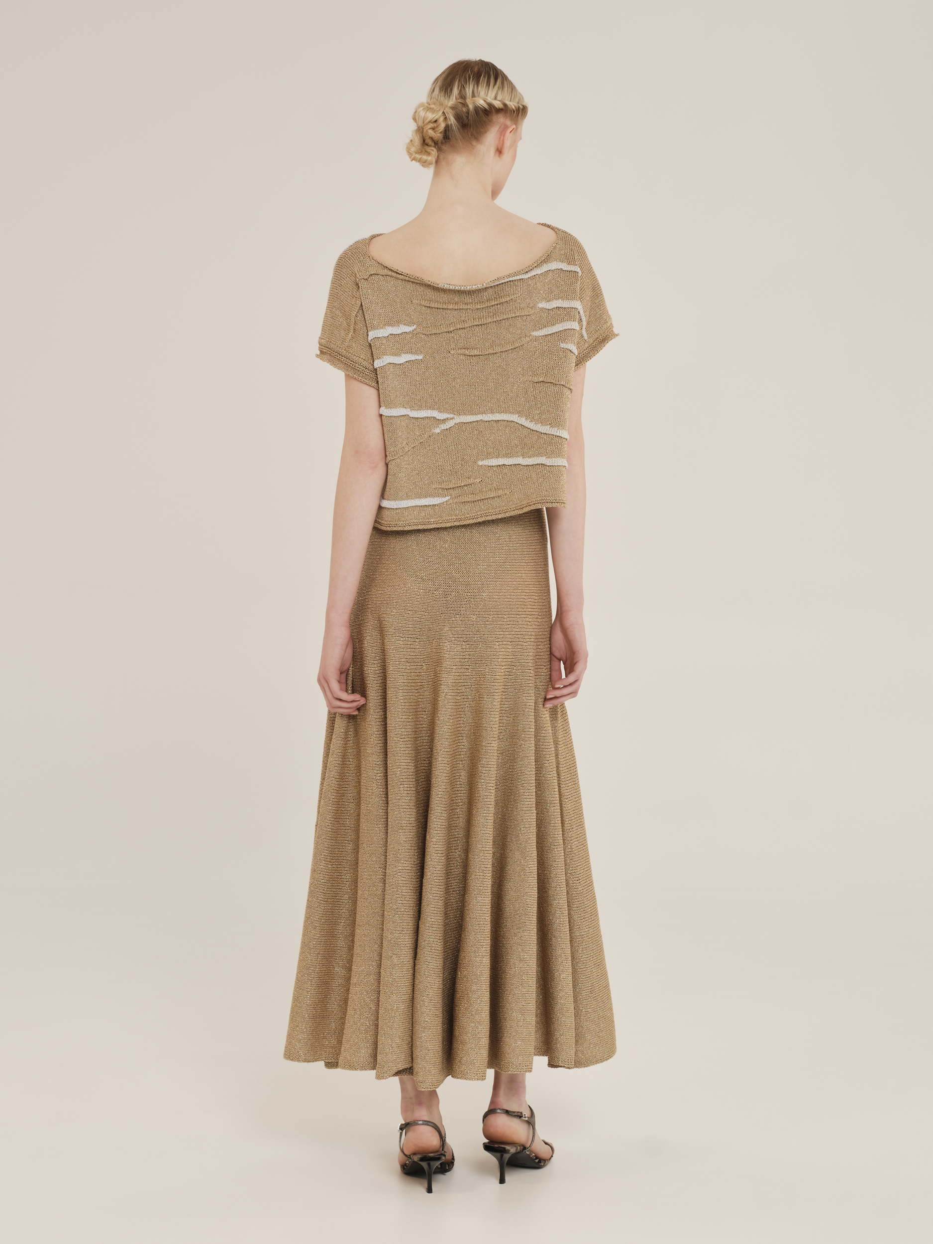 Πλεκτή μίντι φούστα από λαμπερό lurex νήμα βισκόζης
