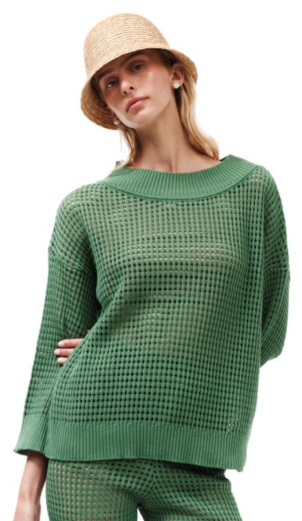 Μακρυμάνικο τοπ με διάτρητη πλέξη από υψηλής ποιότητας ελληνικό βαμβάκι σε άνετη γραμμή, με κλειστή λαιμόκοψη.